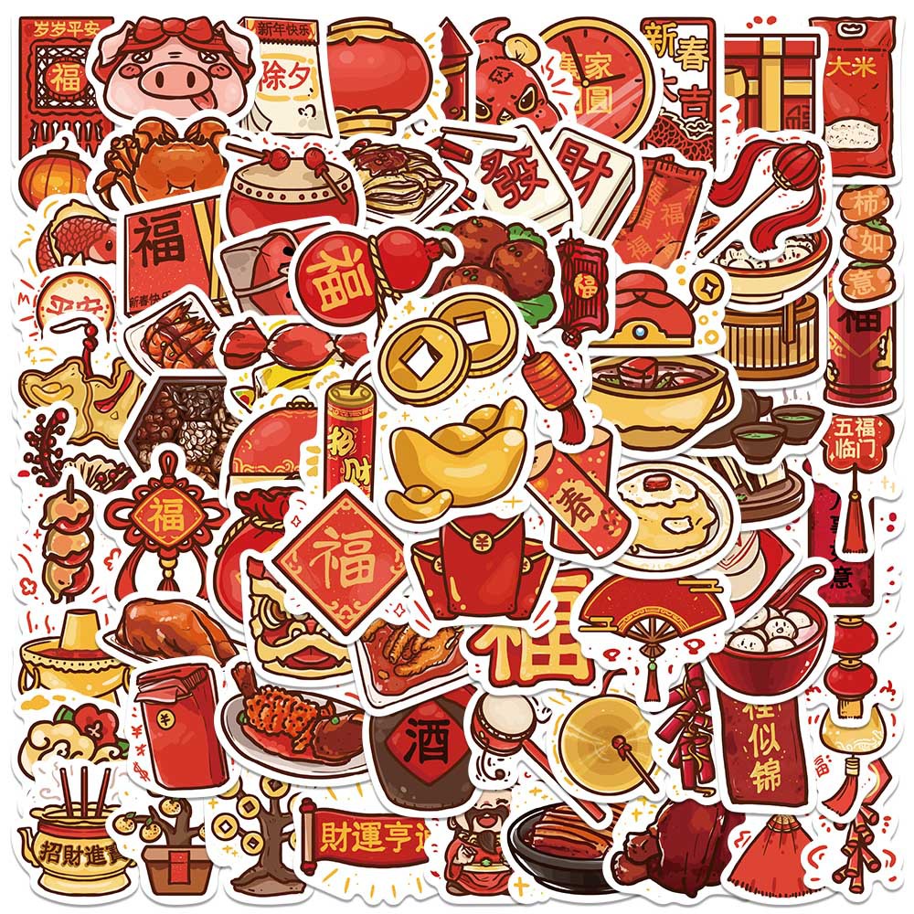 2024年新作80枚漫画旧正月小物ステッカー携帯電話パソコン部屋装飾防水ステッカー