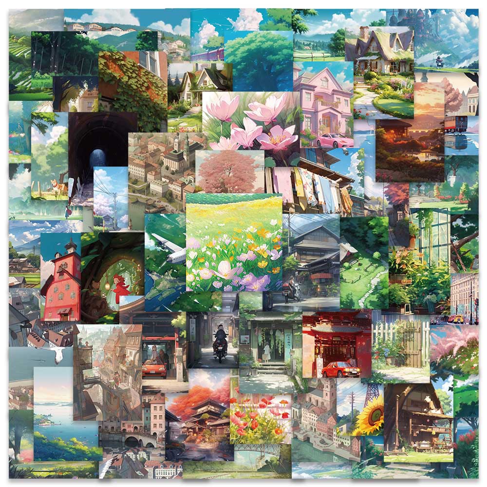 60枚のアニメ風芸術風景落書きシールスーツケースノートパソコン携帯電話防水貼り絵卸売り可能
