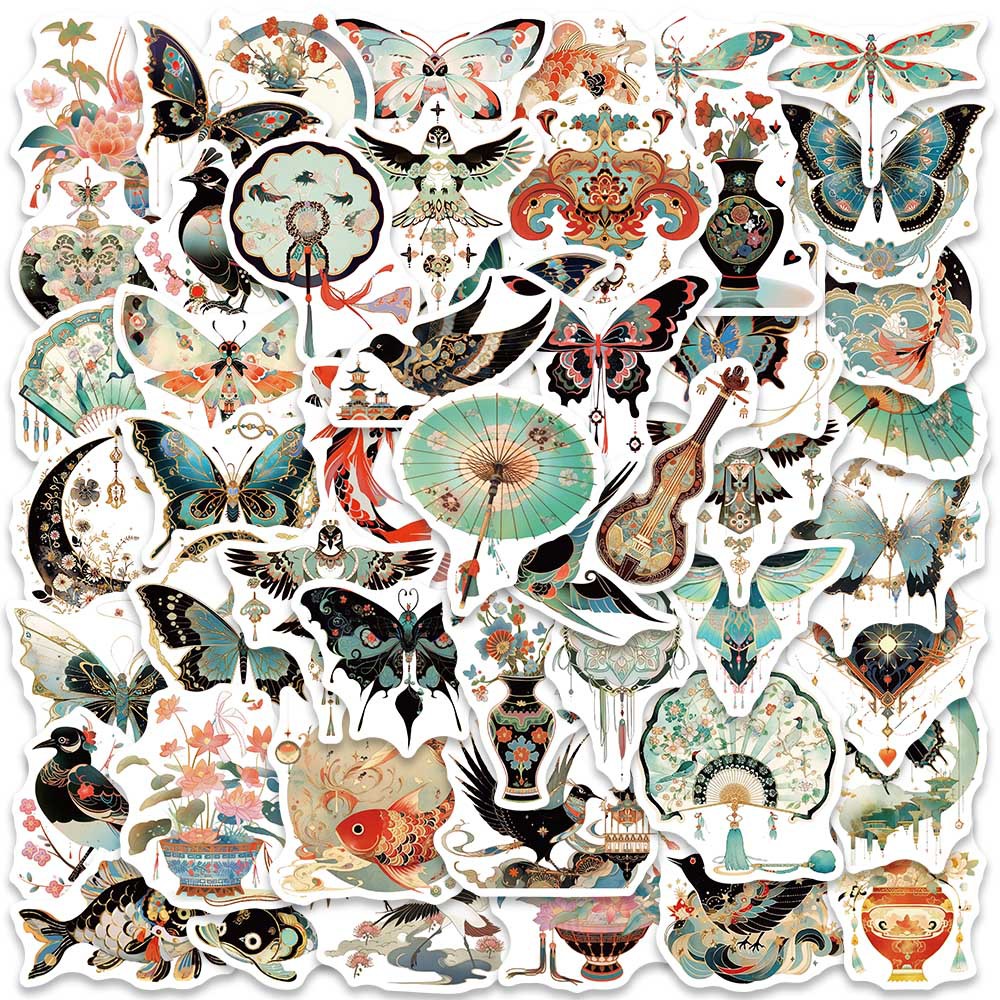 50枚の中国式潮春日レトロ系ステッカーノートカップ携帯電話の個性diy装飾手帳ステッカー
