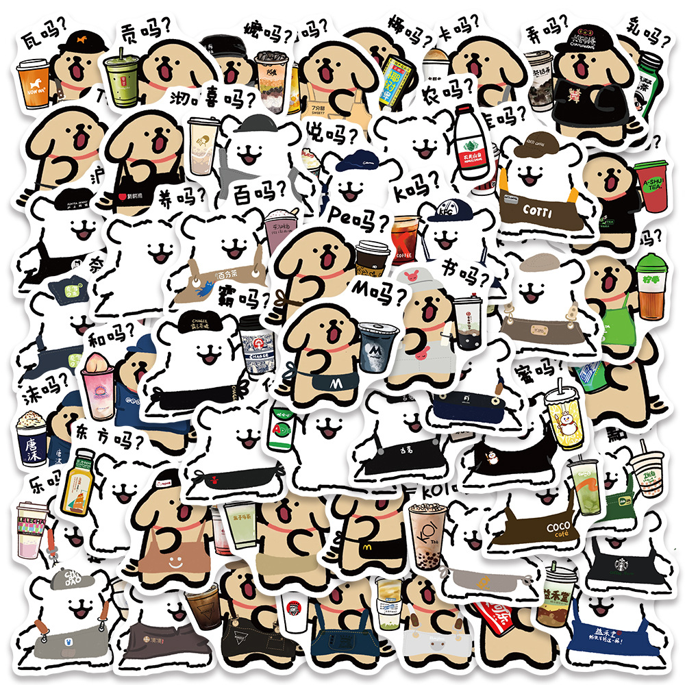 50枚のかわいい子犬のミルクティーの子供の漫画の落書きのシールのスーツケースのノートのコップの携帯電話の防水は絵を貼ります。