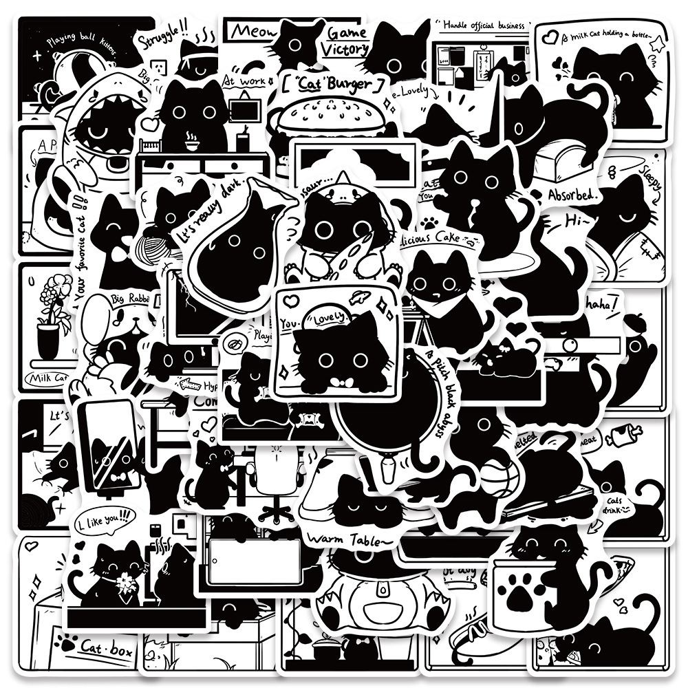 50枚の黒い生活のノートの漫画のかわいい猫のシールのスーツケースの携帯電話のコップのdiy装飾のステッカー