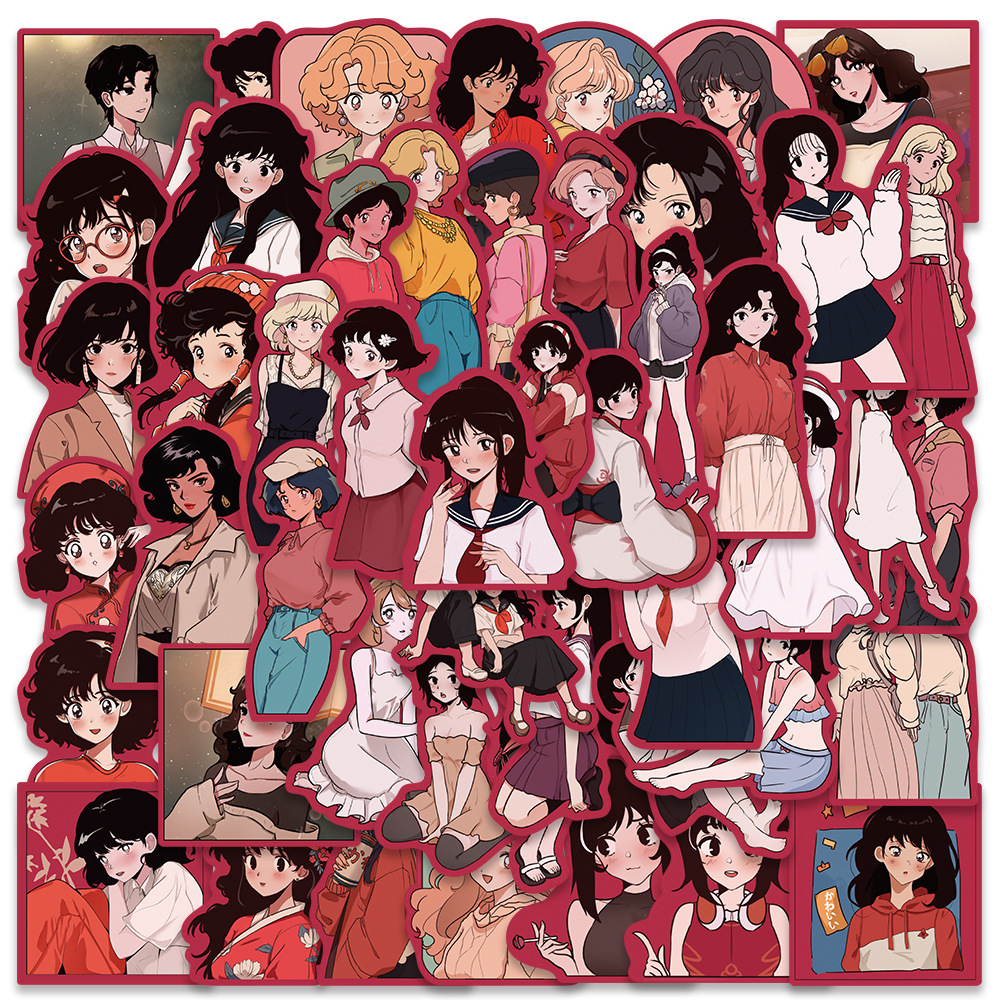 昭和少女赤縁落书きステッカー49枚スーツケースノートパソコン防水diyステッカーリムーバブル