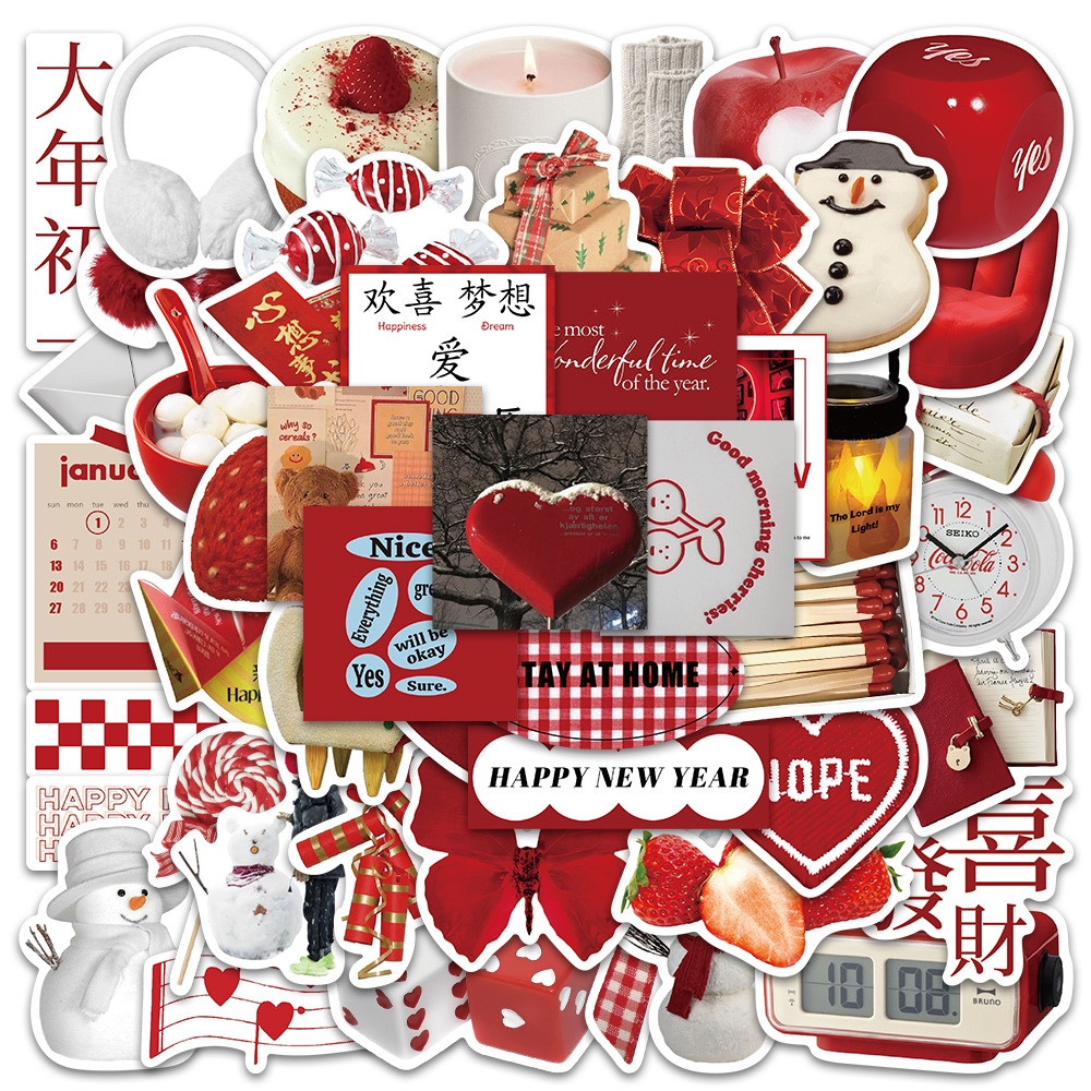 50枚新年祭り新春手帳貼り絵携帯電話パソコンノートカップdiy防水シール