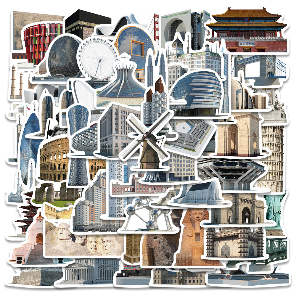 65枚缲り返さない世界各地建筑ステッカースーツケースギタースケートボード水カップ本防水ステッカー