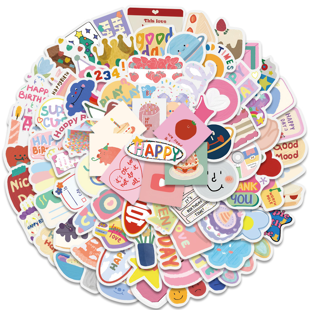 90枚韩国インスタ风可爱い诞生日おめでとうステッカートロリー携帯电话カップおもちゃ防水ステッカー