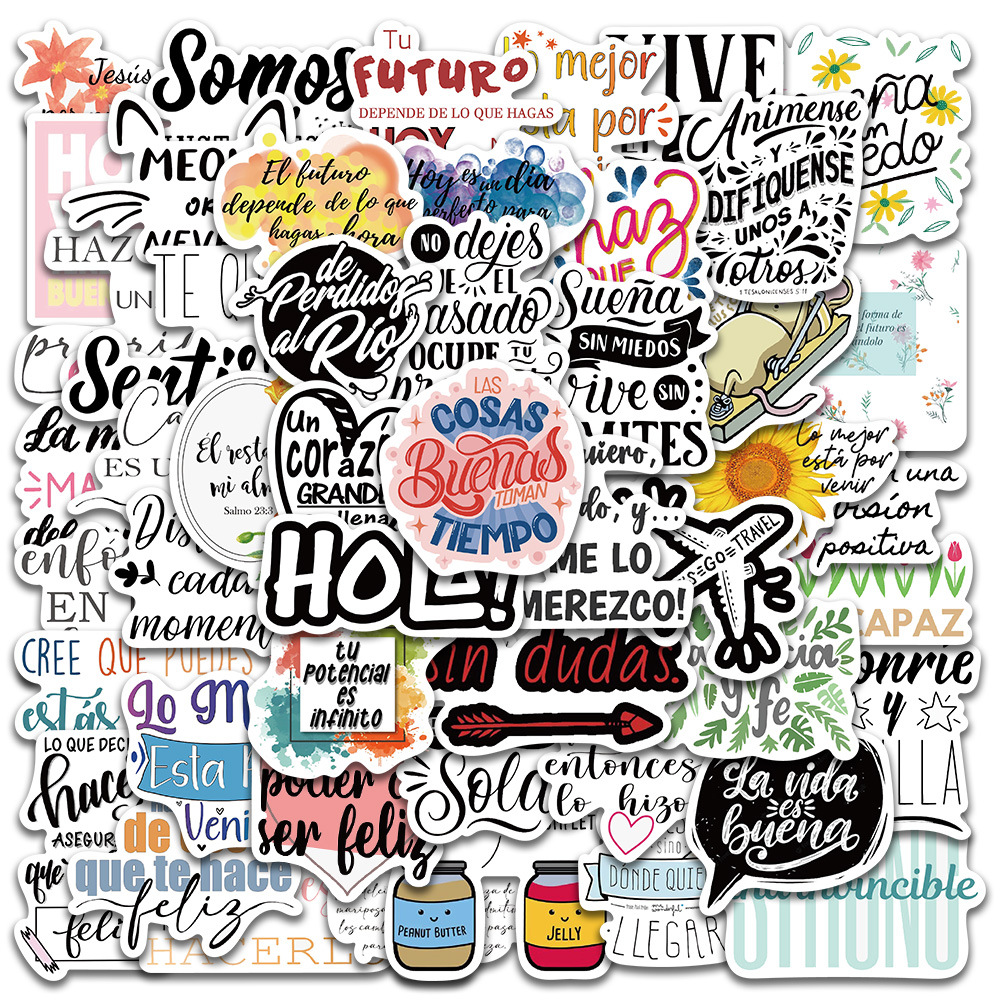 50枚のスペインの励ましの英語のフレーズはスーツケースの携帯電話のコップの落書きの防水のシールを貼ります。