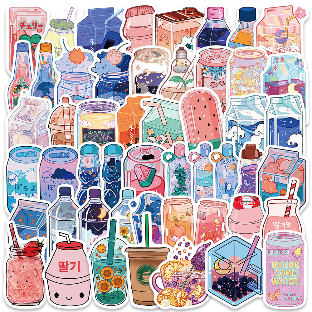 50枚可爱いインスタ风食品饮み物ボトルシールクリエイティブ素材手帐日记本携帯ケース装饰ステッカー