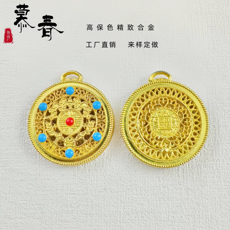 中国風の色保持古代ゴールド両面三色祝福/長寿ペンダント同じスタイル diy 手織りジュエリー卸売