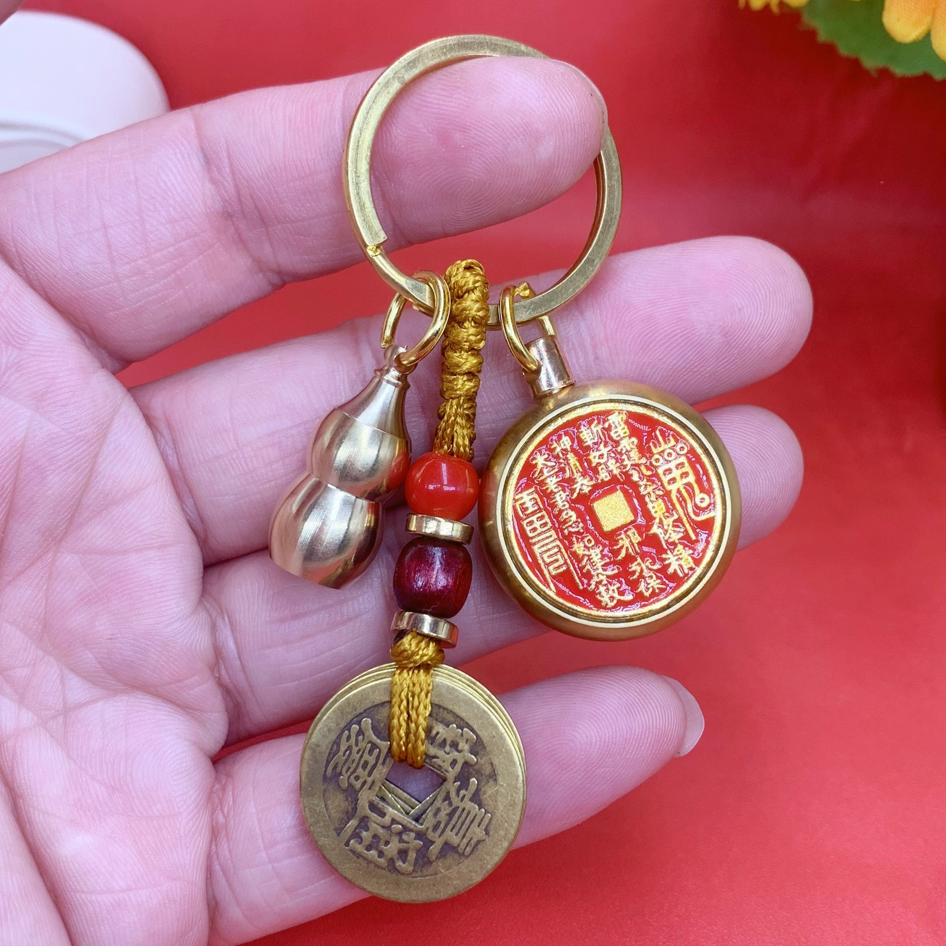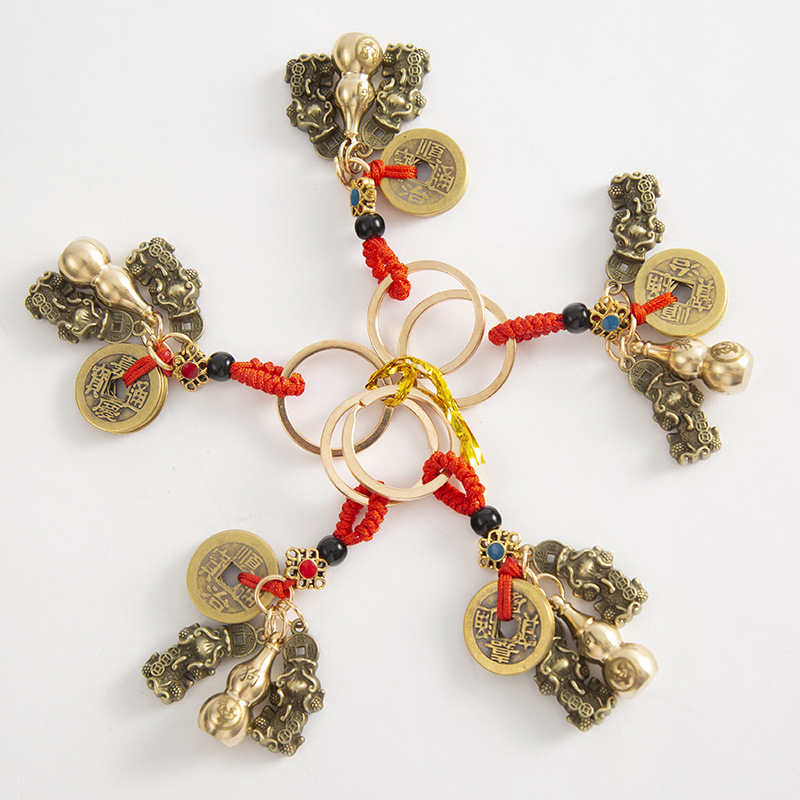 純銅のヒョウタンの卸売りの五帝のお金の鍵は掛けて観光地区の露店の小さい商品の卸売りを掛けます。