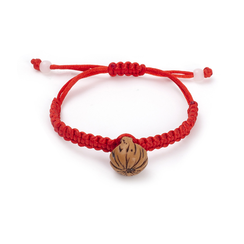 手編みの赤い縄のカップルの赤ちゃんの桃の木の手の串は驚きを防ぎます。