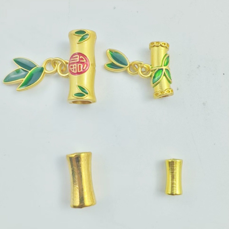 合金製の油滴り大穴、竹節と竹の葉のツーピースセット、新しい中国風のプレスボタンと襟ボタンのペンダント装飾