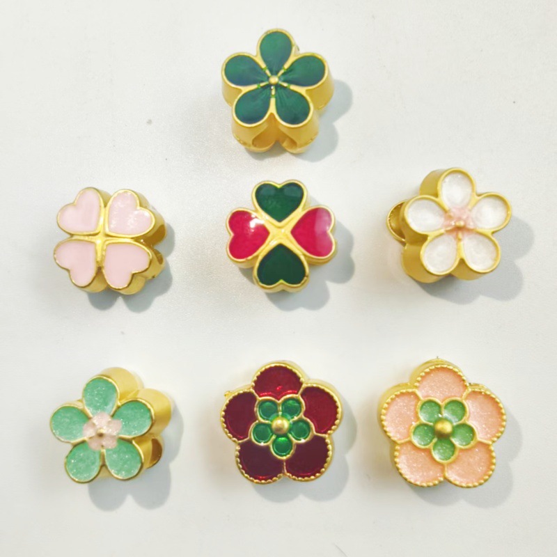 シンプルな古代サンドゴールドドリップオイル桃の花ルースビーズ四つ葉のクローバービーズ小さなペンダントペンダント diy アクセサリー卸売