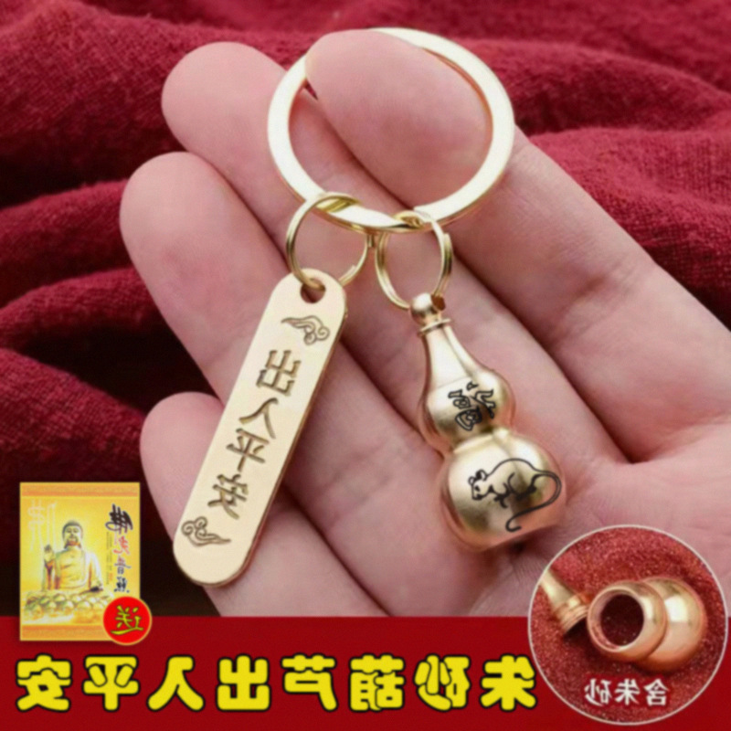 黄銅の朱砂の中空のヒョウタンの輸送の鍵は平安の自動車のペンダントの創意の個性の男女のキーチェーンに入ります。