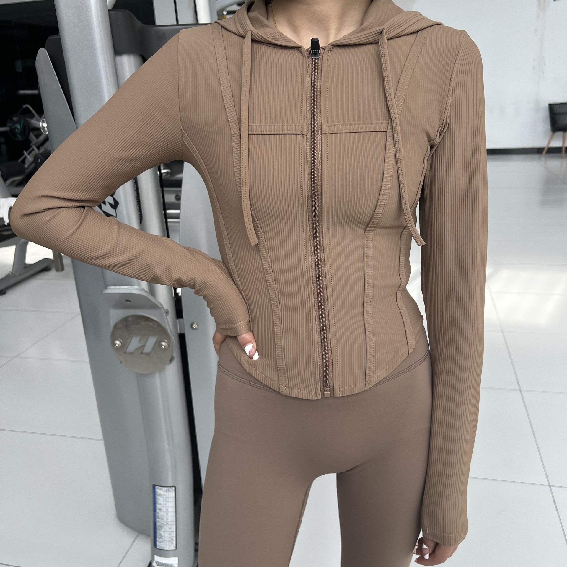 2024秋冬新作ヨガウェア長袖レディーススリムジッパーフード付きスポーツジャケットランニングトレーニングフィットネスウェア