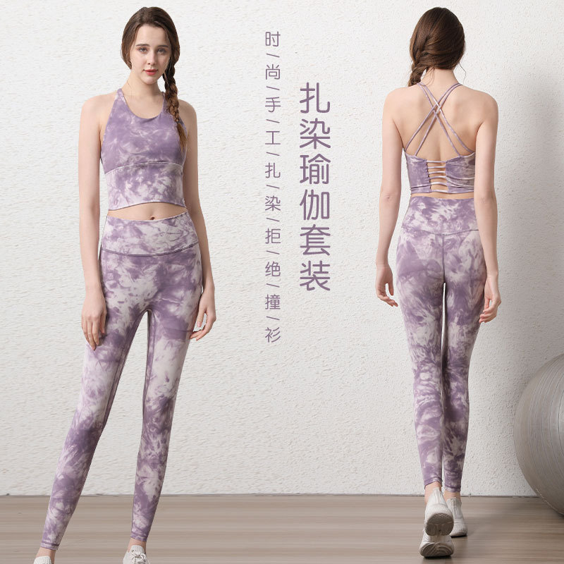 ヨーロッパとアメリカのヨガウェア、タイダイ柄の美しい背中見せスポーツブラ、ハイウエストヒップアップ速乾性タイツ、ヨーロッパとアメリカのスタイル