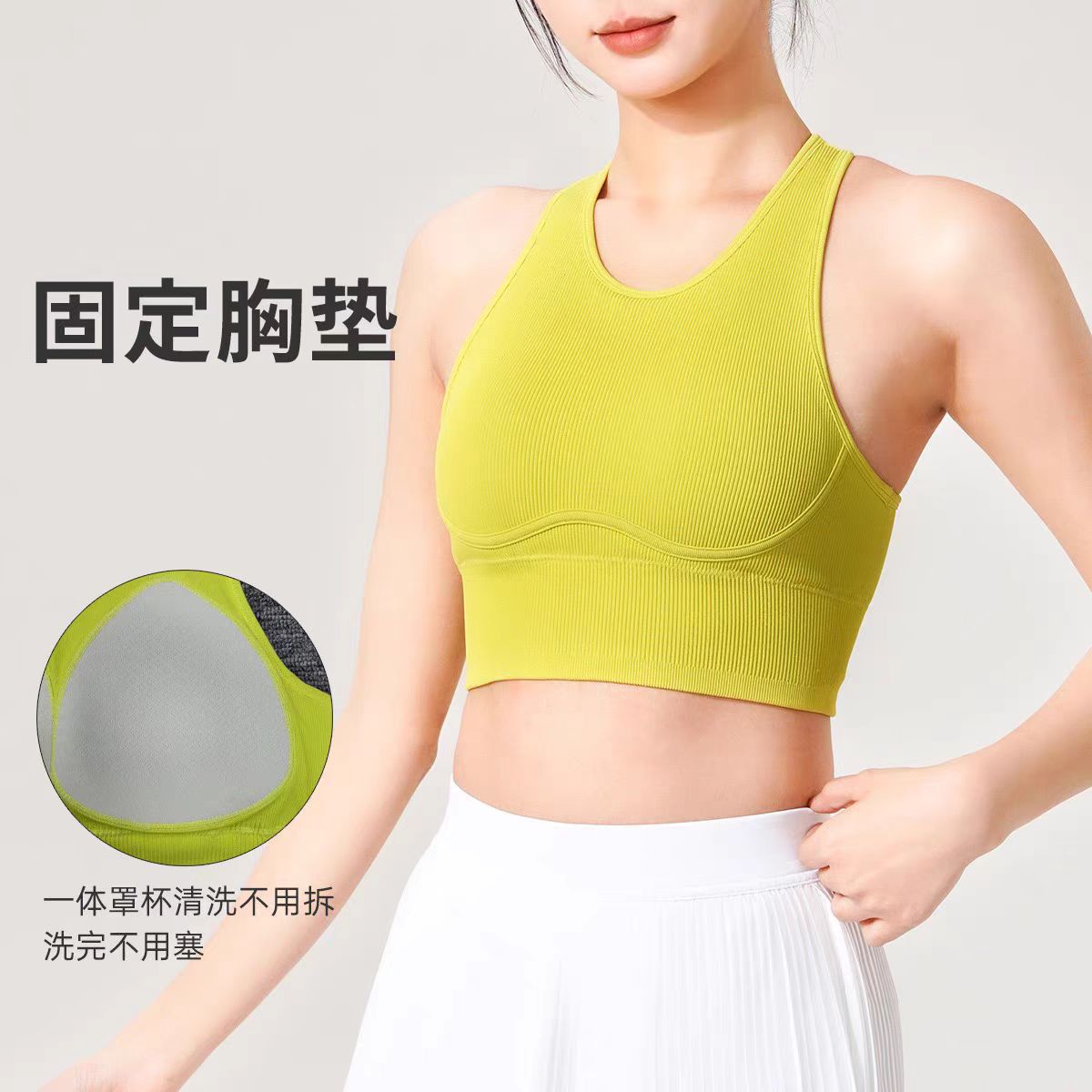 トレーニング用スポーツブラ 女性用 固定パッド入り 耐衝撃 高強度 ピラティス ヨガ 美背 フィットネスブラ