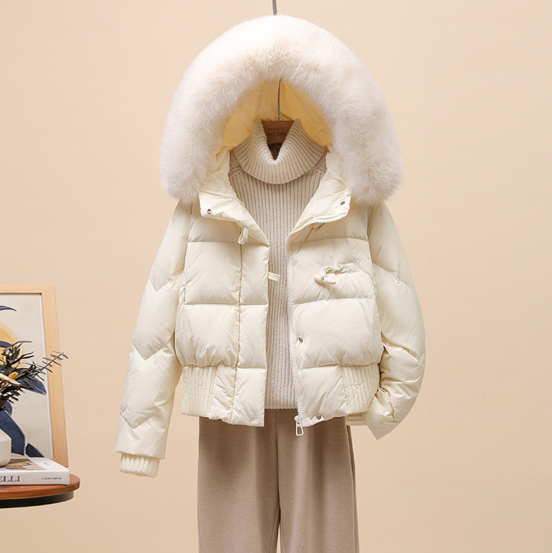 高級感のあるホワイトダックダウンショートダウンジャケット レディース 2025年新作 冬用 厚手 可愛い配色 韓国風 パフジャケット