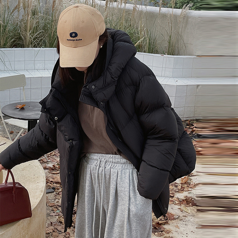 帽子付きダウンジャケットの女性2024冬のファッションは甘い小柄なデザイン感があります。