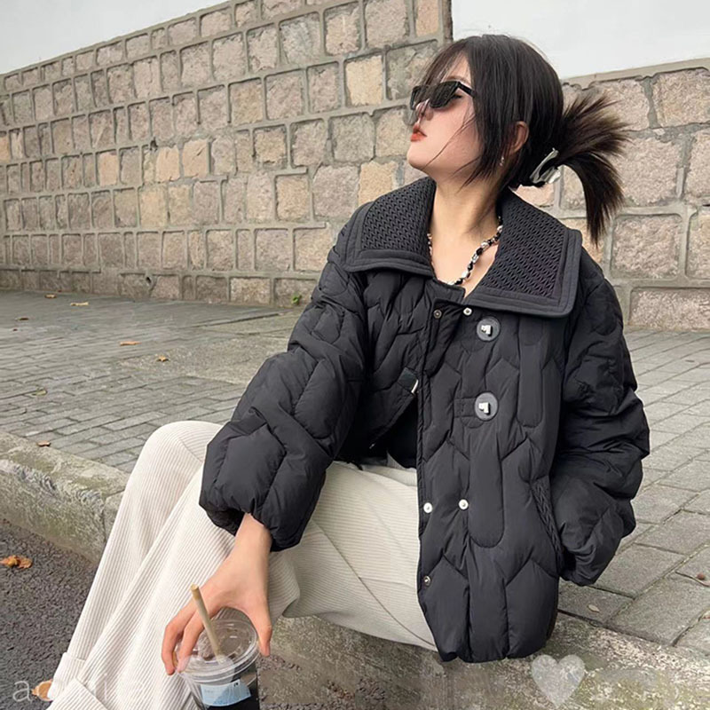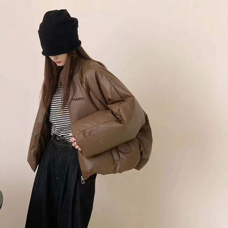 PUタイプのアメリカンダウンパン服女性2024冬のファッションファッションブランドのデザイン感文字白鴨パイルの厚いコート