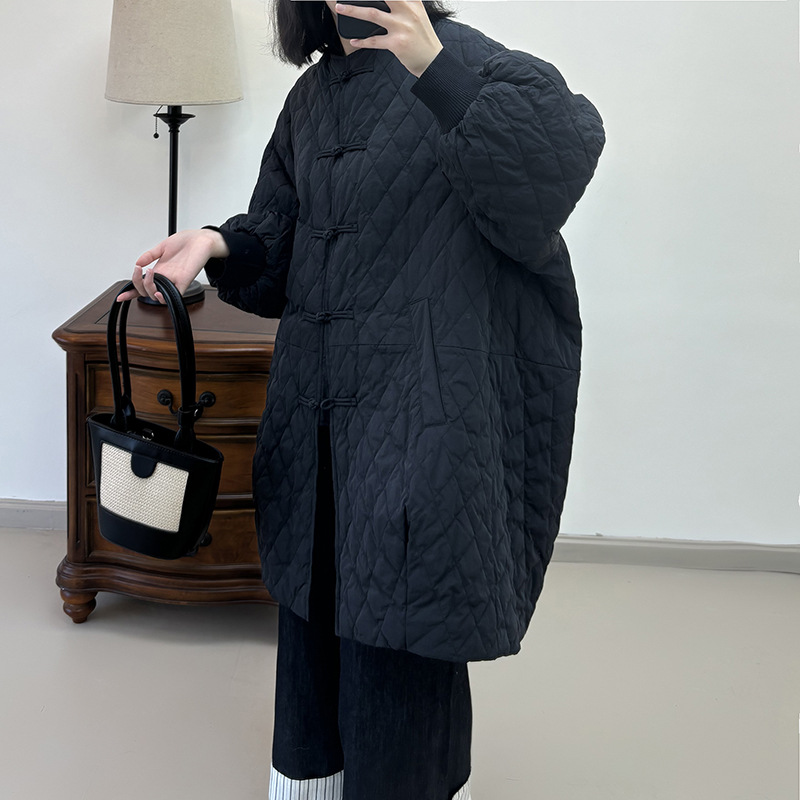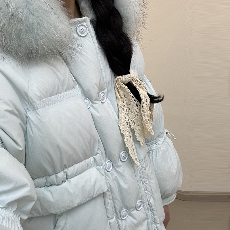 90白鴨絨毛高豪華ミディアムダウンジャケット女2024冬ファッションレトロ盤ボタン大サイズゆるい隠れ肉コート