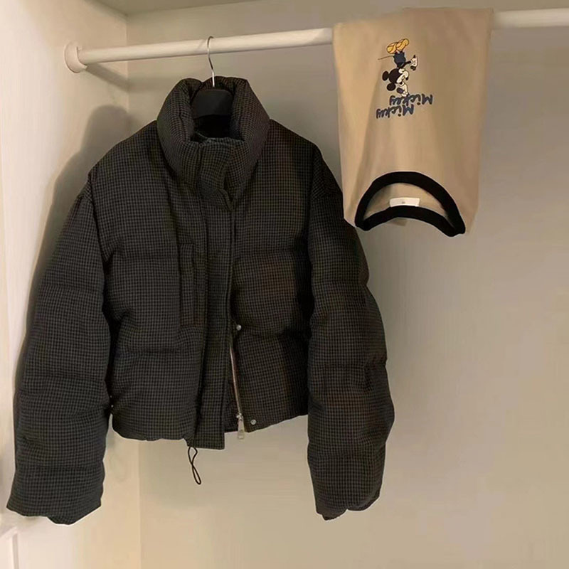 アメリカンスタイルの格子柄ダウンジャケット レディース ショート丈 2025年冬 ファッション スタンドカラー トレンドブランド 厚手 小柄な方向け ホワイトダックダウン パンコート