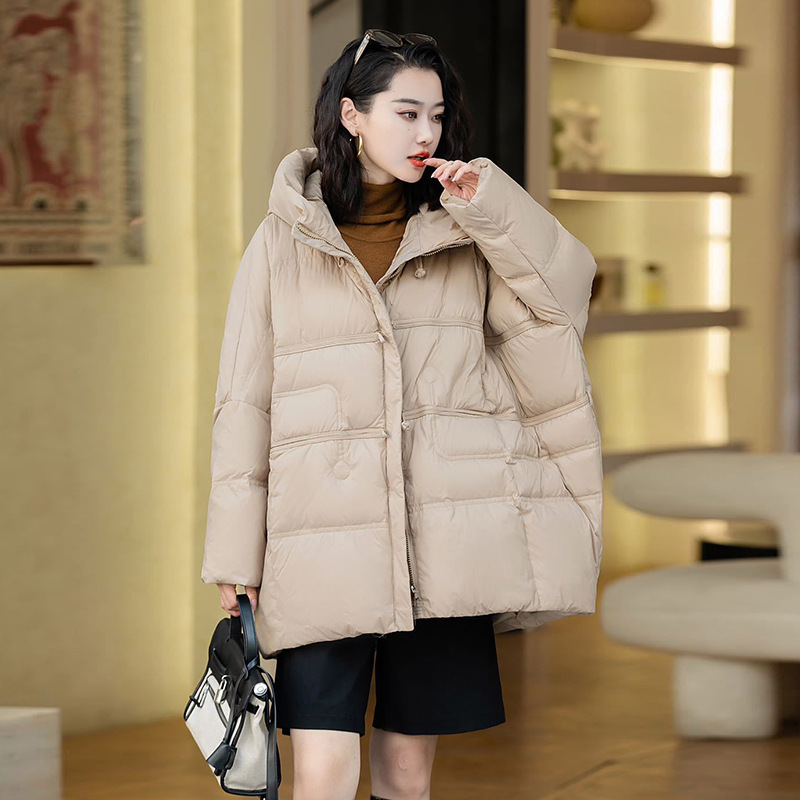 90%ホワイトダックダウン高密度ダウンジャケット レディース 2025冬新作 パフ感 ゆったり フード付き 厚手 パンコート トレンド