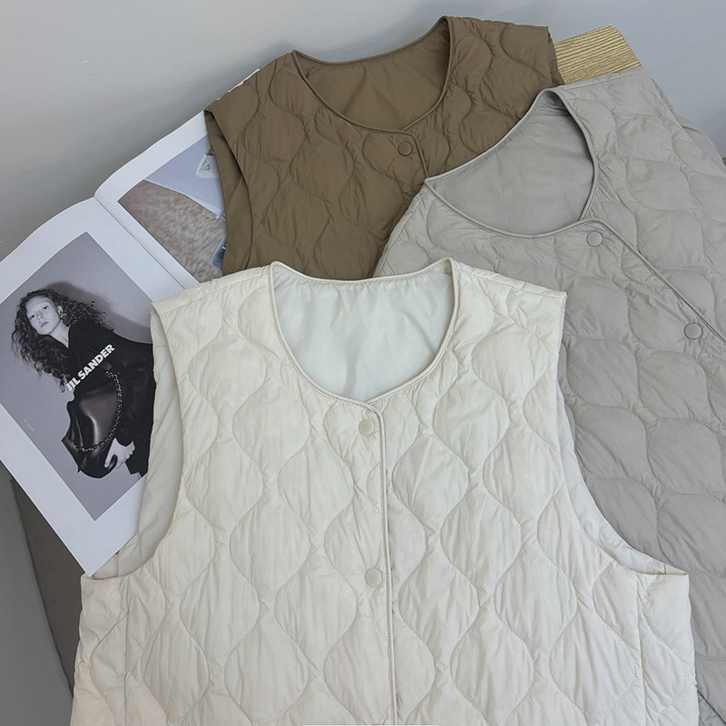 90%ホワイトダックダウンインナーダウンベスト レディース 2025秋冬兼用 Vネック/ラウンドネック ヒョウタン型ベスト ダウンインナーライナー