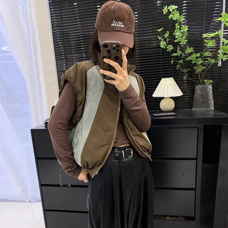 欧風デニム切り替えダウンベスト レディース 冬新作 軽量 配色 暖かい90%ホワイトダックダウンベストジャケット トレンド