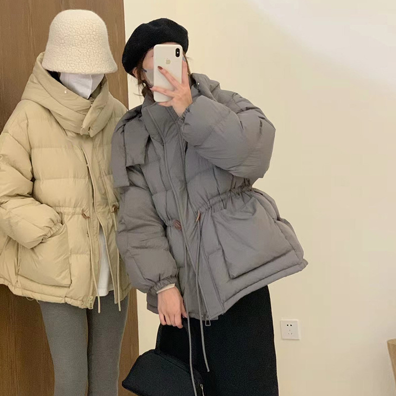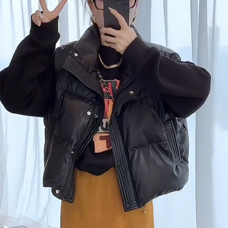 しわの短いダウンジャケットの女性2024冬のファッション立襟韓国版のゆるい隠れた肉のデザイン感が厚いパン服