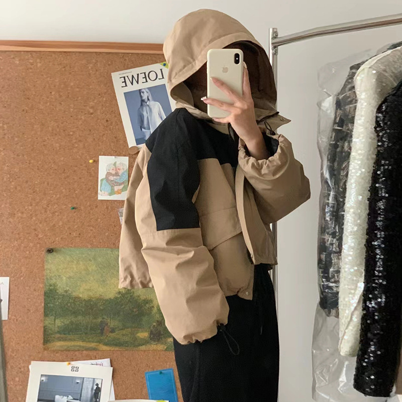 90白鴨絨毛工装パイクダウンジャケット女冬2023年新型衝突色突撃服小柄カップルコート