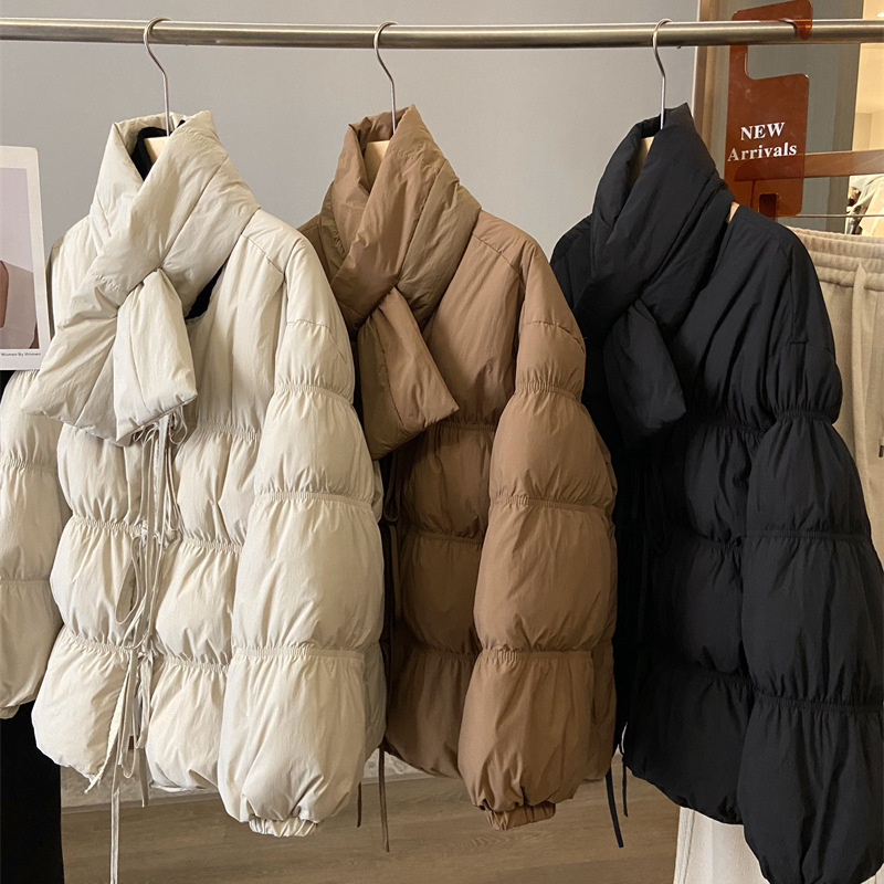 90白鴨毛マフラーの短いダウンジャケット女性2023冬の新しいしわ保温デザイン感パン服が爆発した