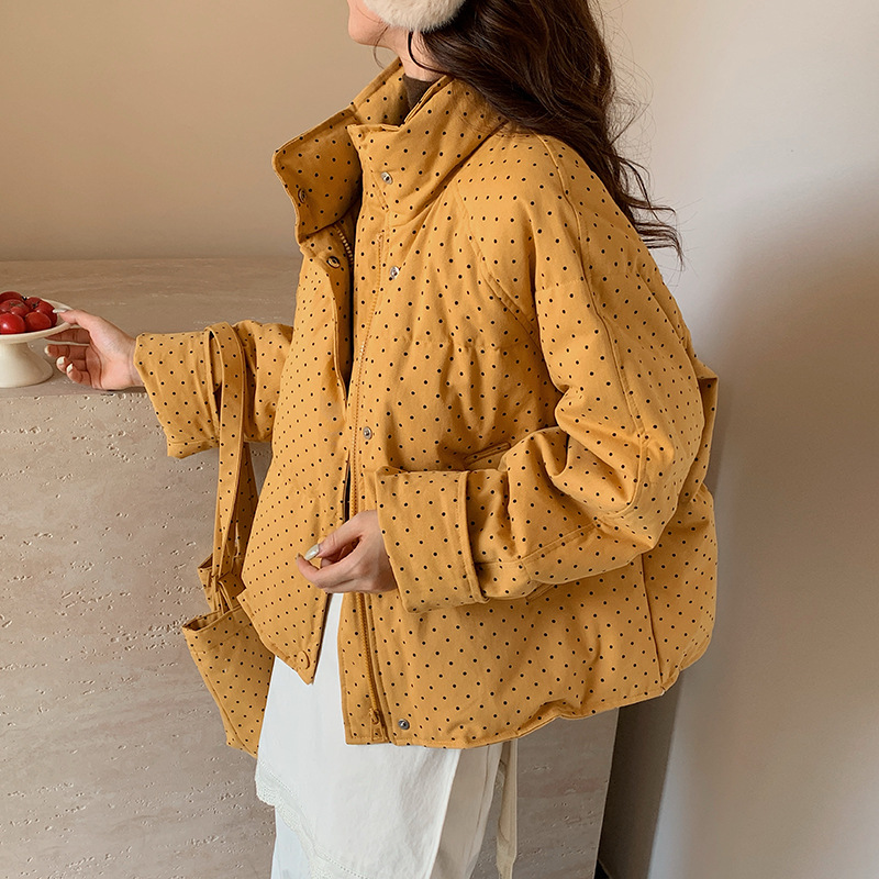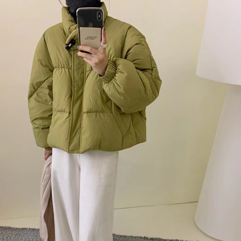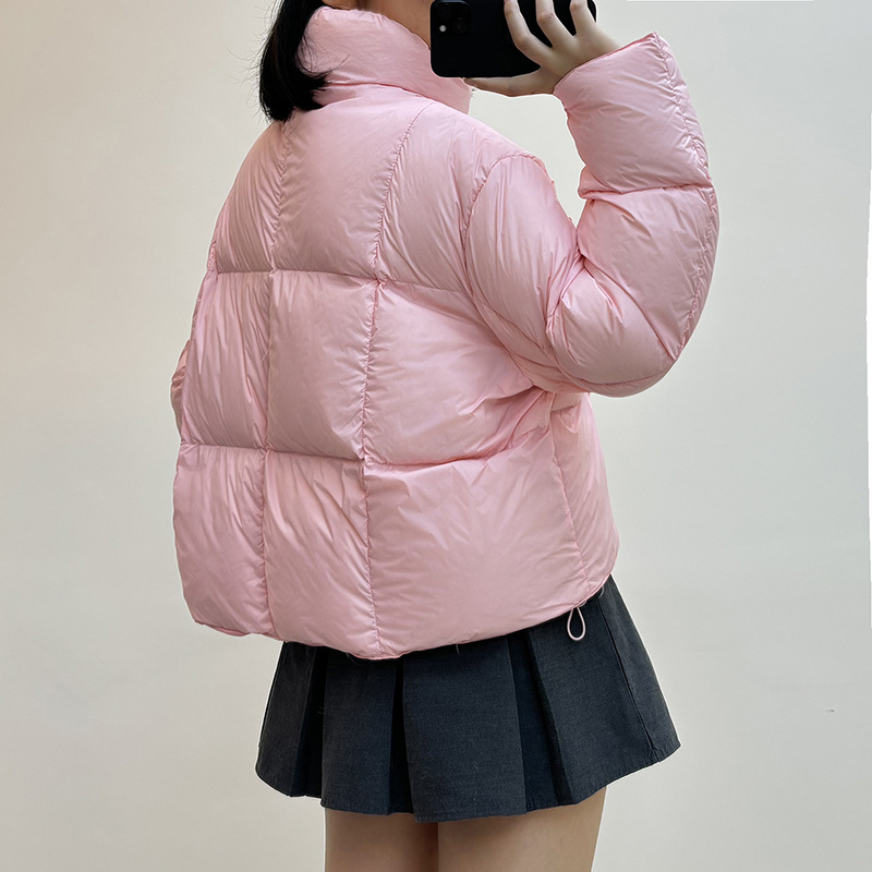 韓国版ダウンパン服女性2024冬新ファッション立襟デザイン感保温白鴨パイル小柄コート