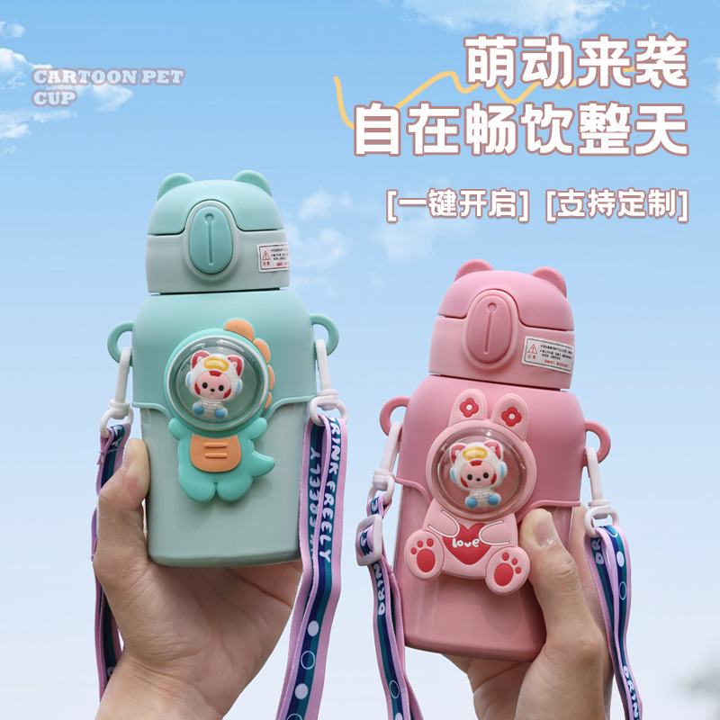 お腹いっぱいカップ卸売 新型可愛い漫画キャラクター水筒 子供学生用 アウトドア携帯斜め掛けプラスチック製水筒