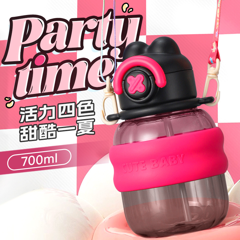 プラスチックカップ卸売 夏用 子供向け 漫画風 クリエイティブ 透明プラスチック製水筒 小学生用 携帯用 大容量 ストローカップ