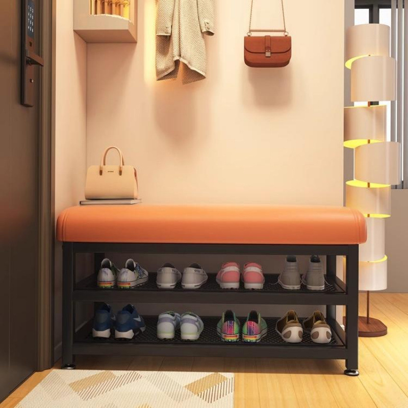 玄関ドア用靴交換スツール、家庭用座り収納ソフトバッグシューズラック、座りスツール一体型鉄製三層玄関収納スツール