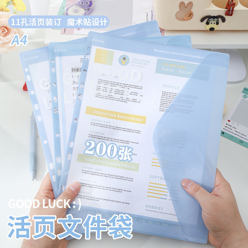 A4透明ファイルバッグテスト用紙収納袋11穴ベルクロ挿入防水学生情報収納ブック