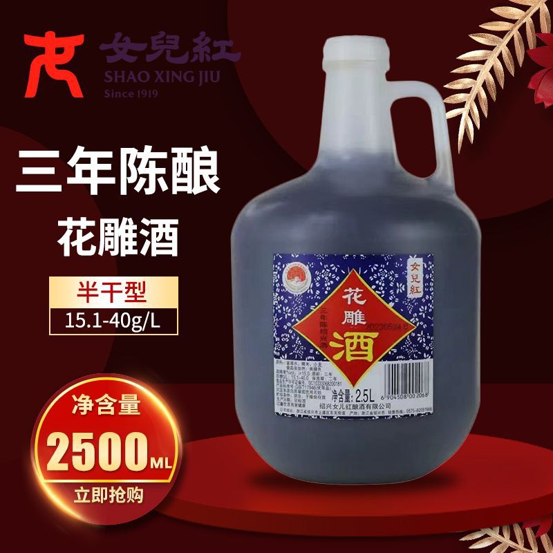 紹興娘紅花彫刻酒黄酒瓶詰め 2.5 リットル瓶詰め 3 年熟成 2.5kg 樽詰め古いワイン料理酒