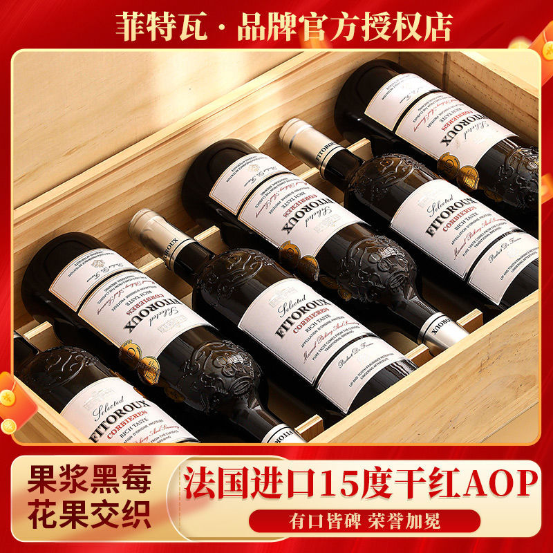 Fitwa 輸入フランス産赤ワイン 750ml 6本 15度 ギフト箱入り オリジナルワイン 輸入赤ワイン