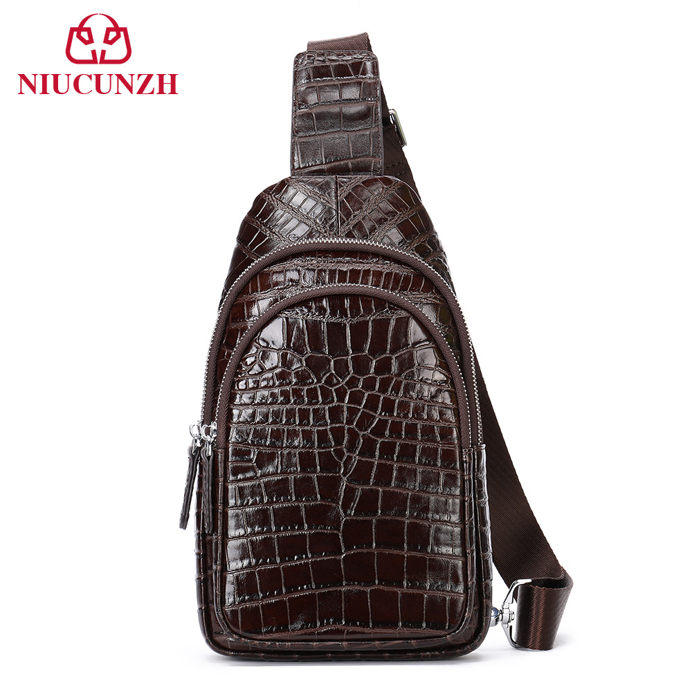 Niucunzh軽い豪華なワニの紋様の男性のカバンの本革の胸の包みの男性式の運動の斜めのリュックサックのカジュアルな胸の前の包みの卸売り