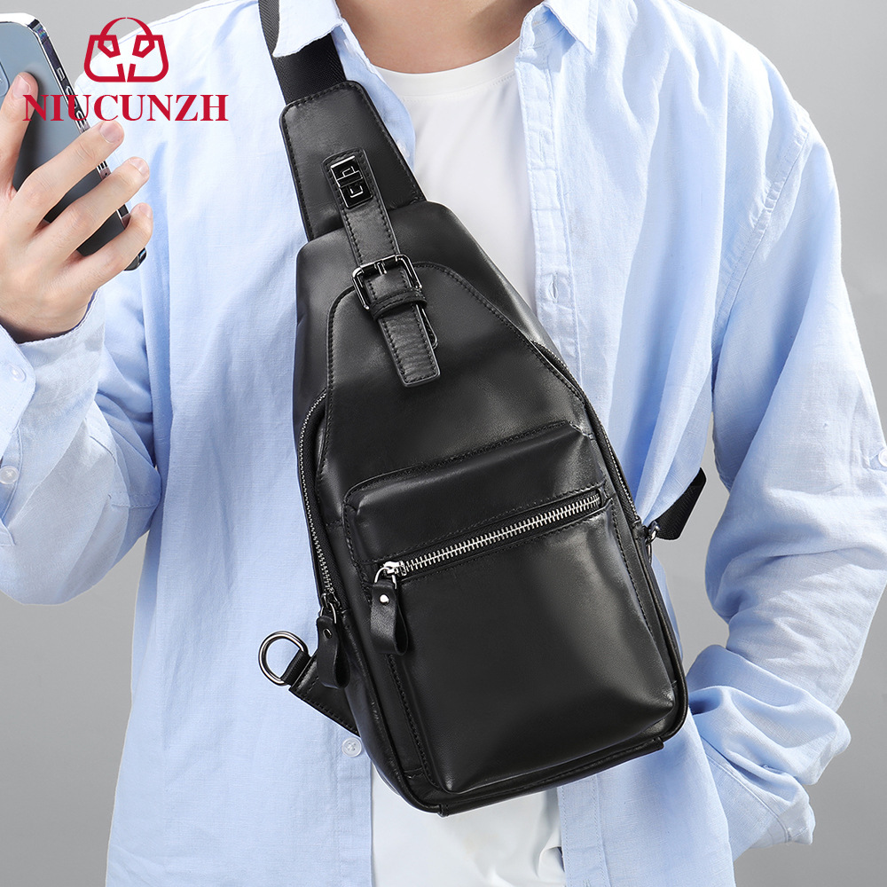 Niucunzh男性本革バッグ屋外携帯電話バッグトップ層牛革胸バッグ個性腰胸共通バッグ