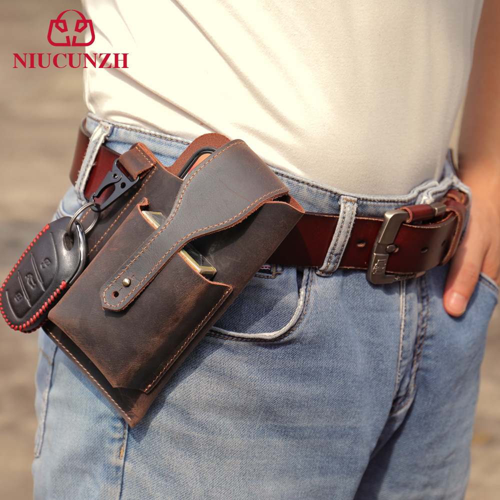 よく売れている同タイプのスポーツ戦術のキーは国境を越えた狂馬皮の携帯電話のウエストバッグのレトロな本革の男性のウエストバッグを掛けます。