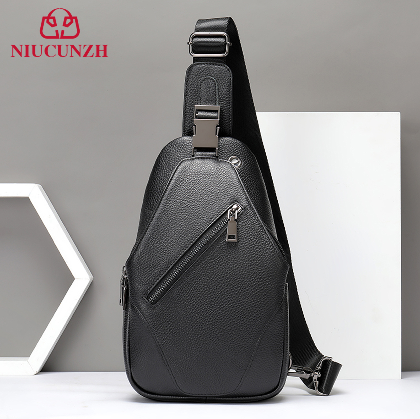 本革の男性の質感の牛革の胸の包みの基礎は肩を合わせて斜めに男性の包みの本革にまたがってロックして運動します。