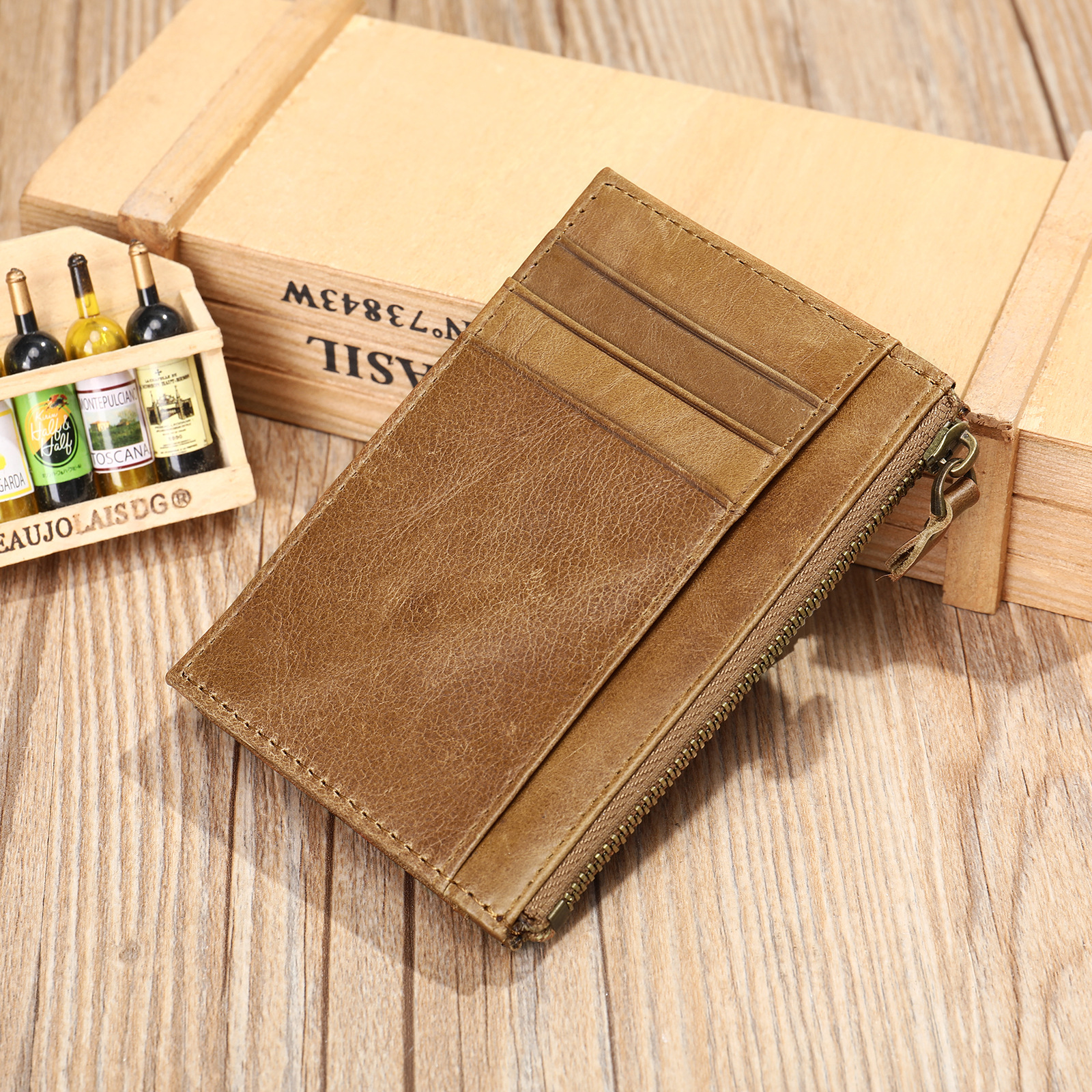 クロスボーダー真皮小銭財布携帯型男性クレジットカード小銭クリップコーヒー色欧米防犯ブラシ小銭袋