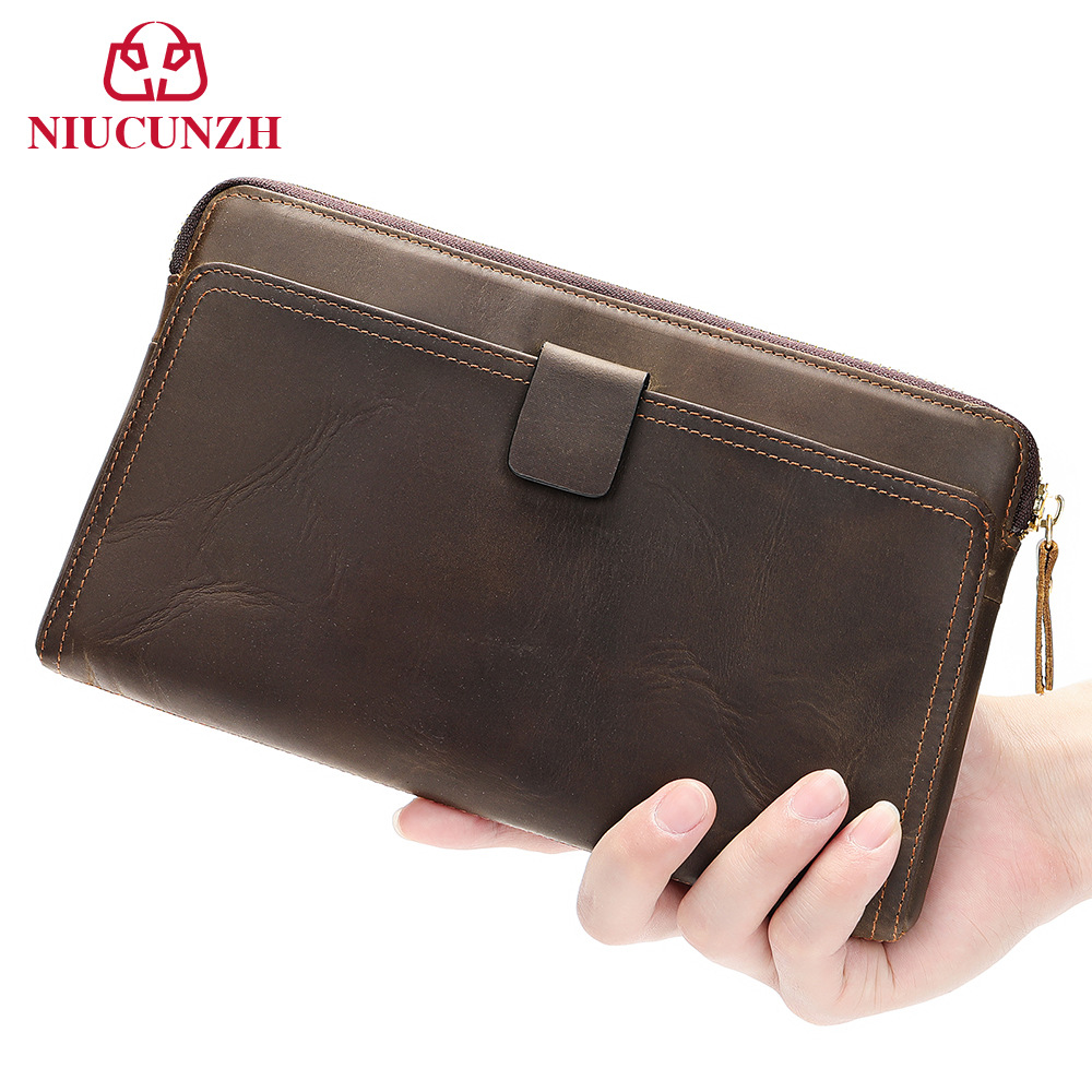 Niucunzh質感牛革財布ビジネス男性頭層皮レイシ質感財布クレジットカード小切手男性バッグ
