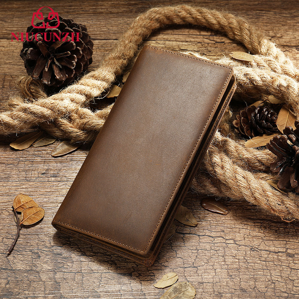 外国貿易の大きいブランドの男性の狂馬の本革のrfidの財布の復古の長いタイプの男性の牛革の手はカバンの卸売りのカバンを持ちます。