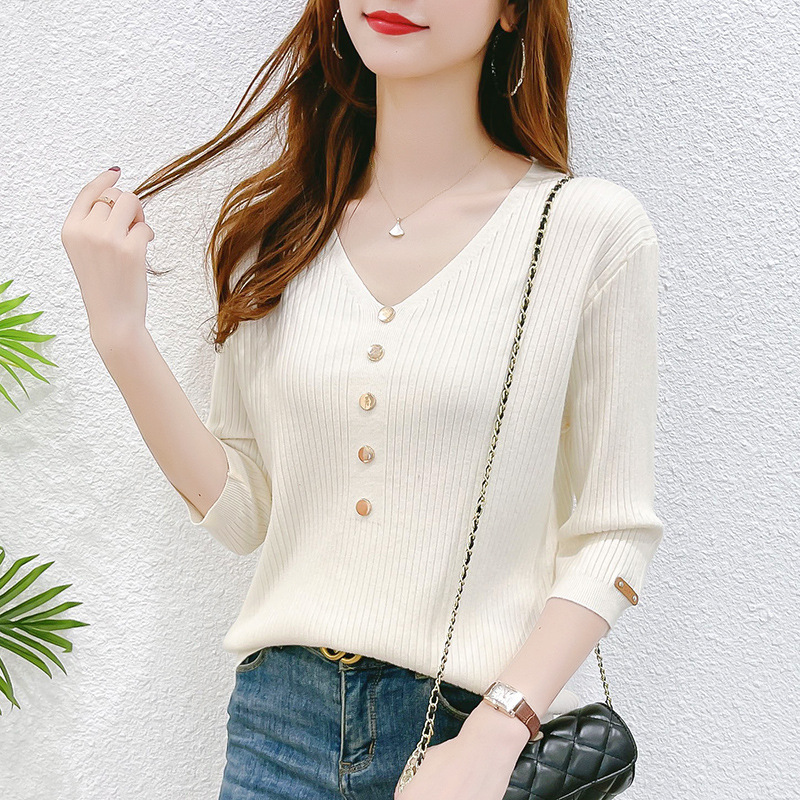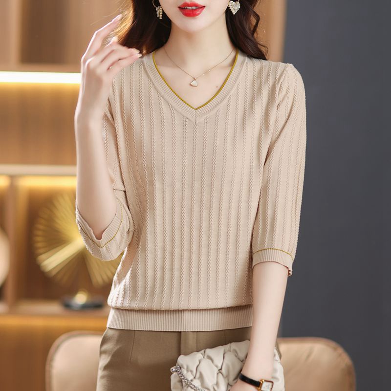 2024秋冬新作ファッションvネック七分袖高級ニット中袖上着レディース早秋インナーシャツ