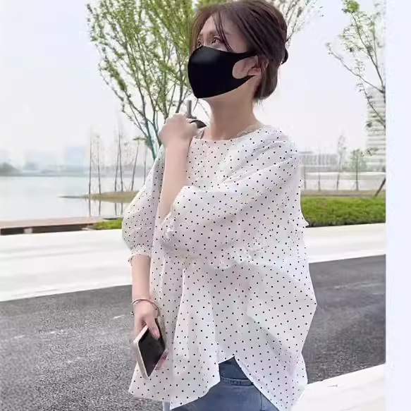 泡袖白い半袖シャツ女性のゆるいデザイン感のある夏の2024の新しい花の赤ちゃんのシャツの上着