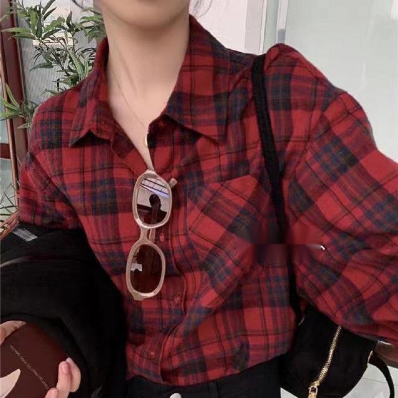アメリカンレトロな赤いチェック柄シャツジャケット レディース 2025 春秋 ゆったりスタイル ゆったりシャツ カジュアルデザイン