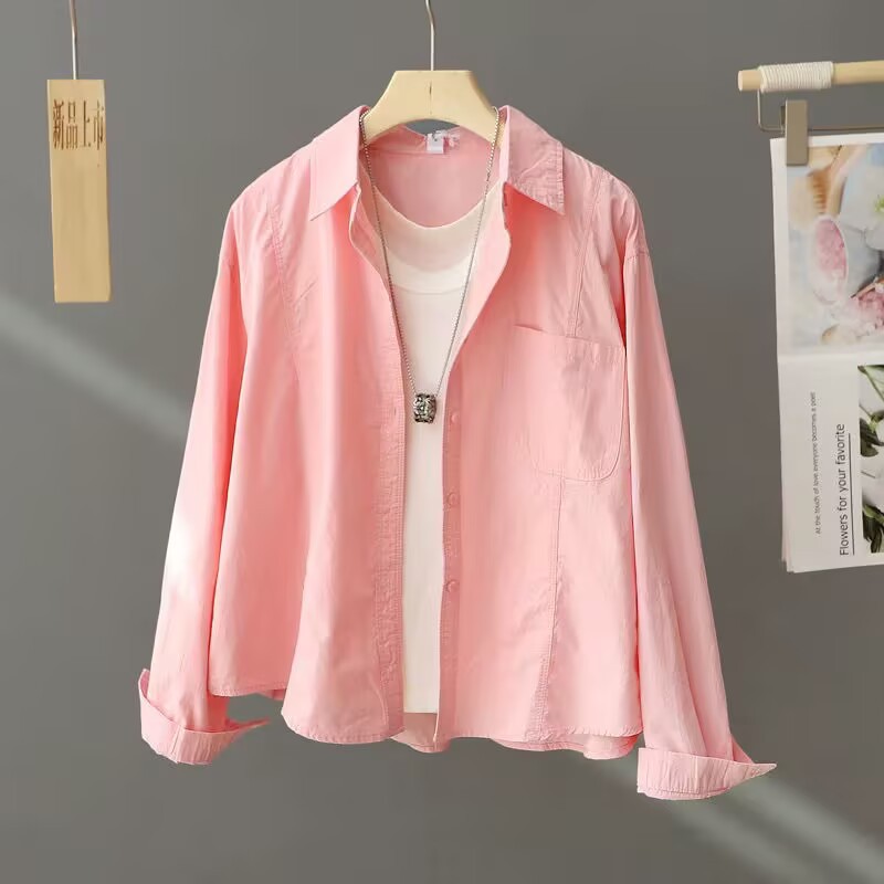 綿2025春秋新作白シャツ女性用小柄体型向けショート丈シャツカーディガン春秋カジュアルトップス