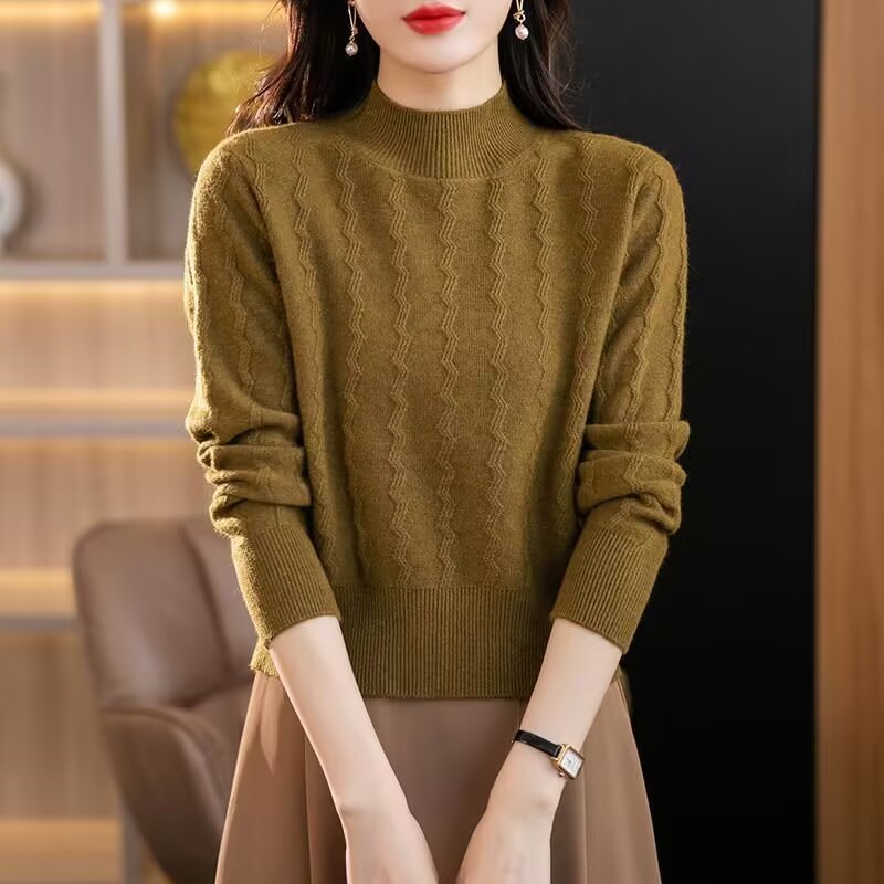 ゆったりとした肉を遮る女性のニットセーター2024秋冬の新型の半高襟のデザイン感カジュアルで快適な上着の卸売り